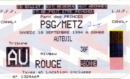 L1-J08 - 10 septembre 1994 20h00 : Paris SG - FC Metz :
